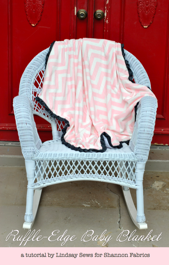 Hello, I'm Lindsay from Lindsay Sews and Craft Buds, and I'm excited to be here today to share a baby blanket I made from Cuddle fabrics! I'm currently pregnant with my first, and if it's a girl, this pink chevron baby blanket will come in handy! But just in case it's a boy, I made the other side a neutral white Cuddle and added denim-colored ruffle trim.
