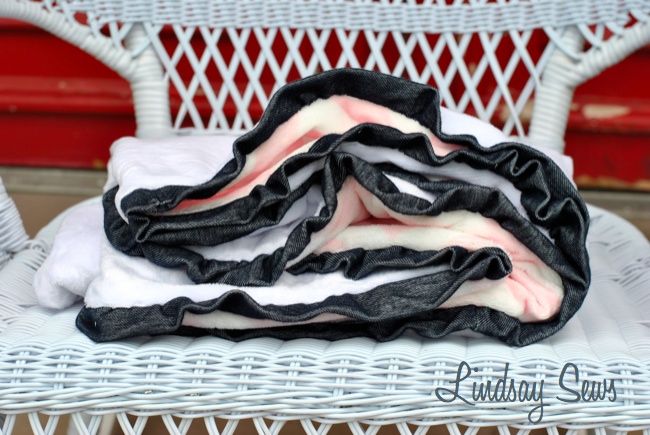 14. Tuck the ruffle to the inside of your blanket sandwich.