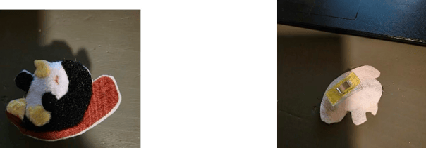 The last step Is to make the penguin that will be moved every day. Trace each piece off the penguin sheet onto the fusible web. Iron on to the scraps of fabric and fuse onto a small piece of the Timtex. Now that the penguin is assembled, trim around it. Attach to clip to the back. I used Alien tape, but you can use fabric glue or hot glue.